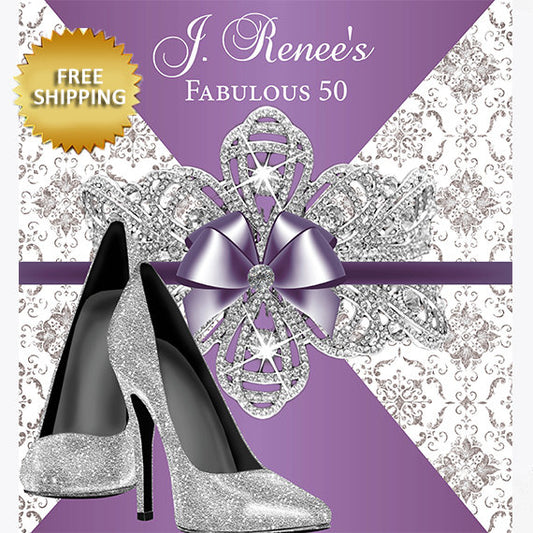 Lavender Elegant FabulElegant and Fabulous Lavender Colored 50th Birthday Party Step and Backdrop with Heels Designous 50 Birthday Party step and backdrop with heels