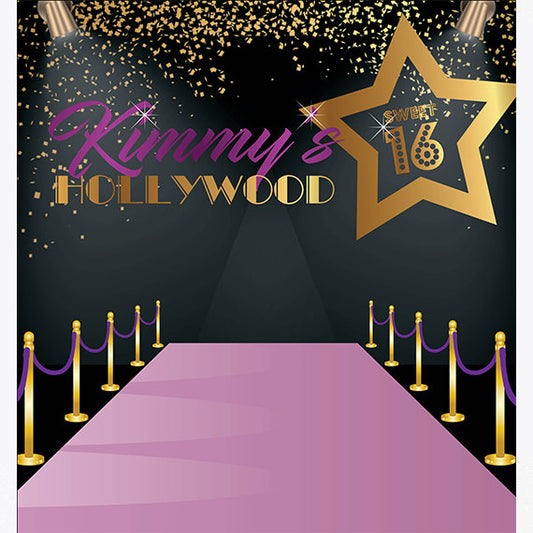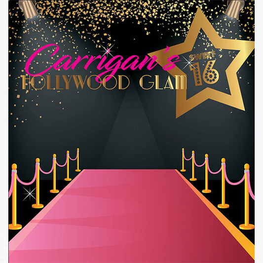 Hollywood theme pink carpet step and repeat backdrop for sweet 16