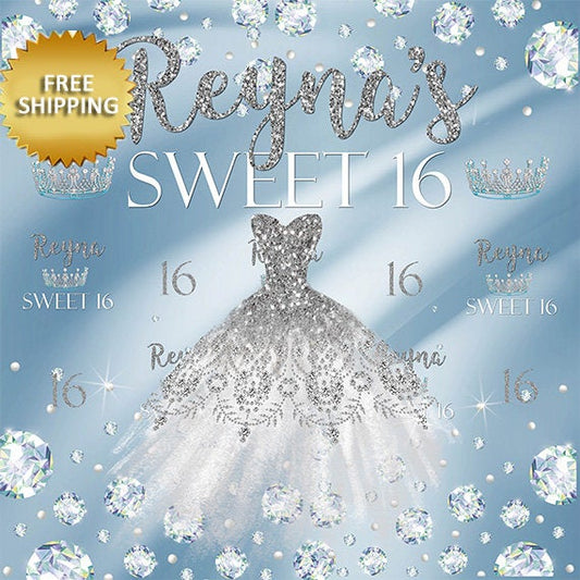 Sweet 16 Dress and Diamonds Custom Step and Repeat Backdrop