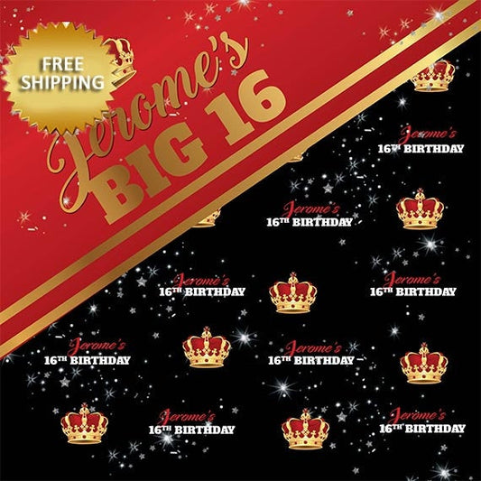 Sweet 16 King Red Custom Step and Repeat Backdrop