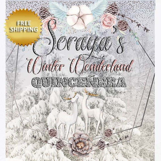 Sweet 16 Winter Wonderland Silver Floral Birthday Step and Repeat Backdrop