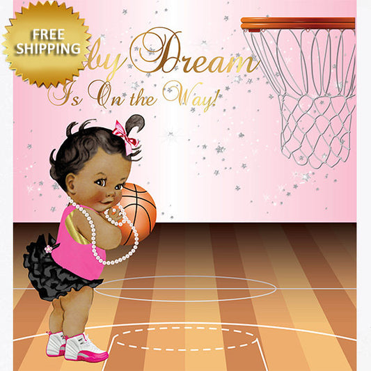 Team Girl Basketball Theme Baby Shower Step and Repeat Backdrop