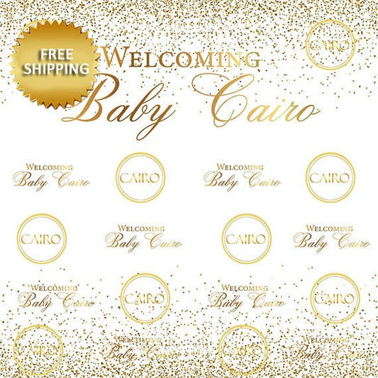 Gold and elegant baby shower step and repeat backdrop