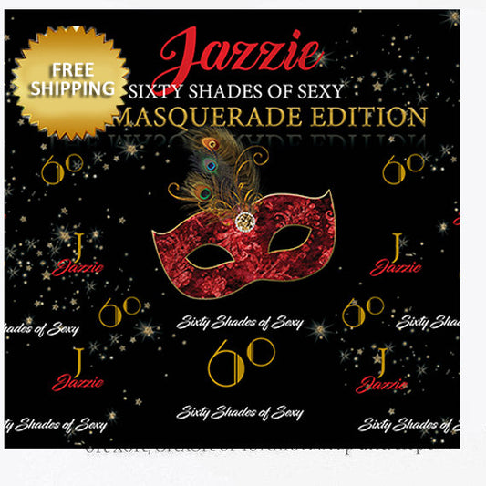 Red and gold Masquerade Mardi Gras Birthday Party Step and Repeat backdrop