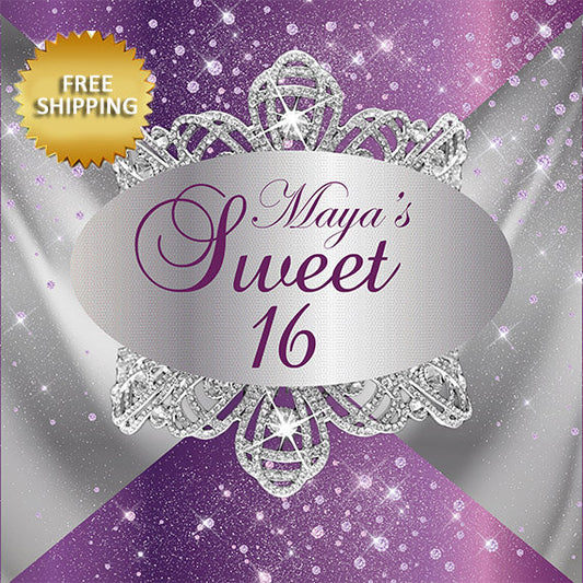Sweet 16 Royal Custom Step and Repeat Backdrop