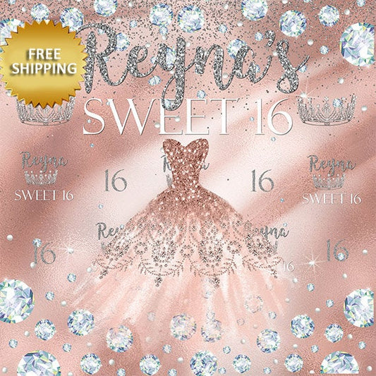 Sweet 16 Dress and Diamonds Custom Step and Repeat Backdrop