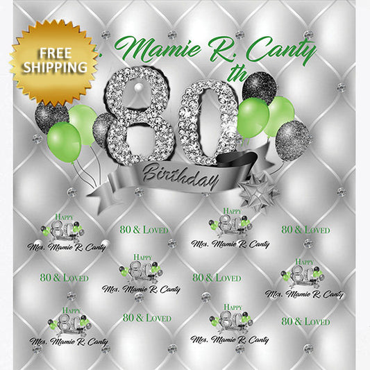 Silver and Blue Custom Step and repeat Birthday Backdrop