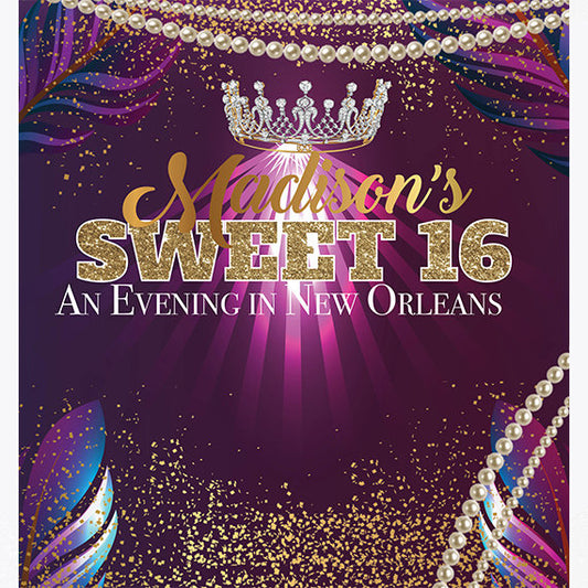Sweet 16 Birthday Party Pearls and Crown Custom Photo backdrop