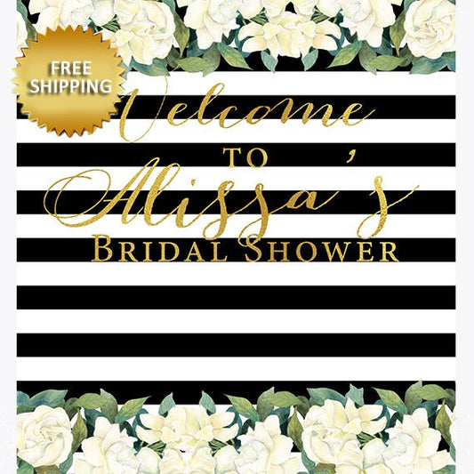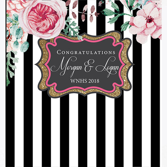 Bridal Shower Stripes and Flowers Step and Repeat backdrop