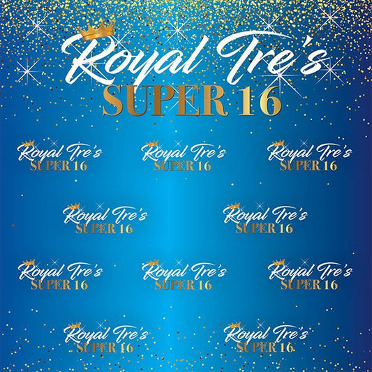 Royalty Blue and Gold Sweet 16 Custom Step & Repeat Birthday Backdrop