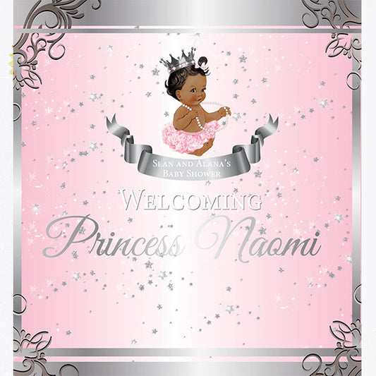 Princess step and repeat backdrop with African American baby
