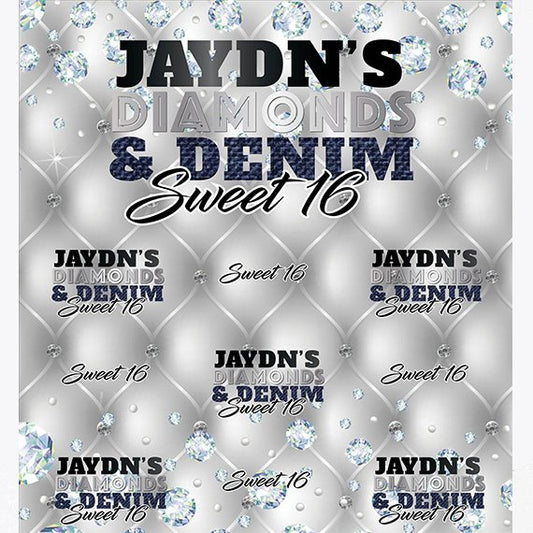 Sweet 16 Denim and Diamonds Birthday Party Step and Repeat Backdrop