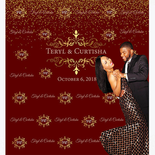 Wedding Red Elegant Custom Step and Repeat Backdrop
