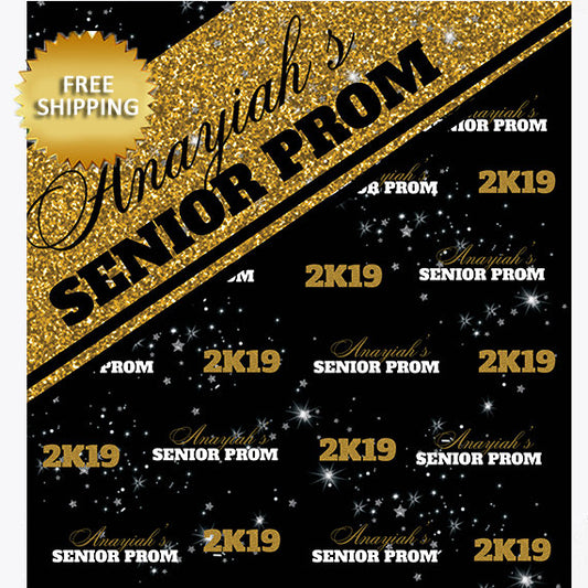 Black and Silver Senior Prom Custom Step and repeat backdrop with crown