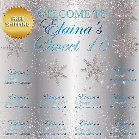 Sweet 16th Birthday Party Winter Wonderland Step and Repeat Backdrop
