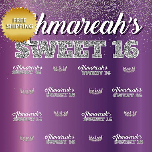 Sweet 16 Purple Royalty Custom Step and Repeat Backdrop