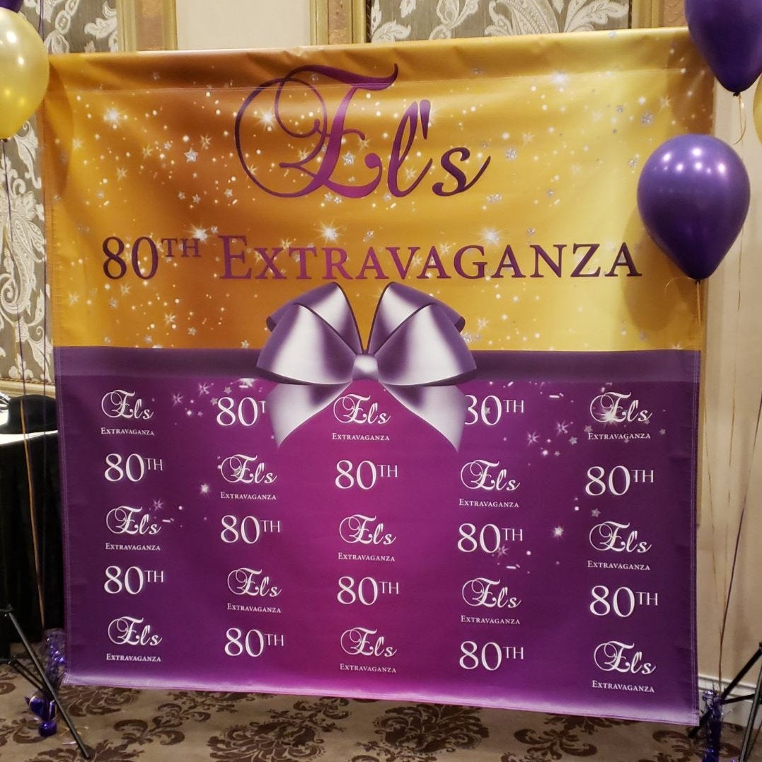 Birthday Party Step and Repeat Backdrop with Ribbon