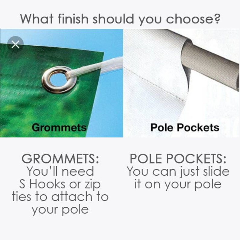 >>Pole Pockets - Recommended if you want a clean and neat finish to your display. It will slide through the pole in your photo stand. Please note that if you select pole pockets, the pocket is accounted for in the height. This may effect the height by 1 - 2 inches.